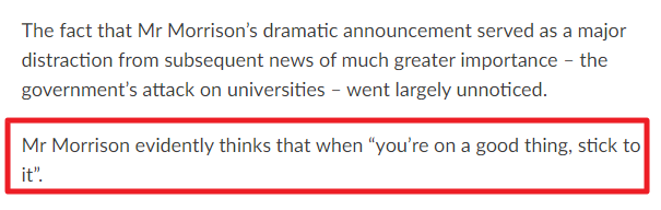 他口口声声世界更穷,更危险,更无序。但莫里森的做法,只会让事情更糟糕。他才是澳大利亚面临的最大威胁。